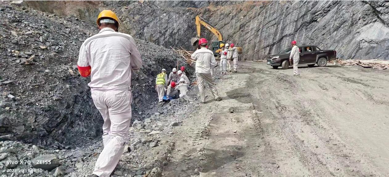 為提高從業(yè)人員對礦山突發(fā)事故的應(yīng)急應(yīng)變能力,做到一旦發(fā)生突發(fā)事件,能夠迅速、高效、安全、有序地實施救援。以“安全第一、預(yù)防為主、自救為主、外援輔助、統(tǒng)一指揮”的方針為原則。德安項目部于2022年6月1日開展了邊坡塌方應(yīng)急演練。